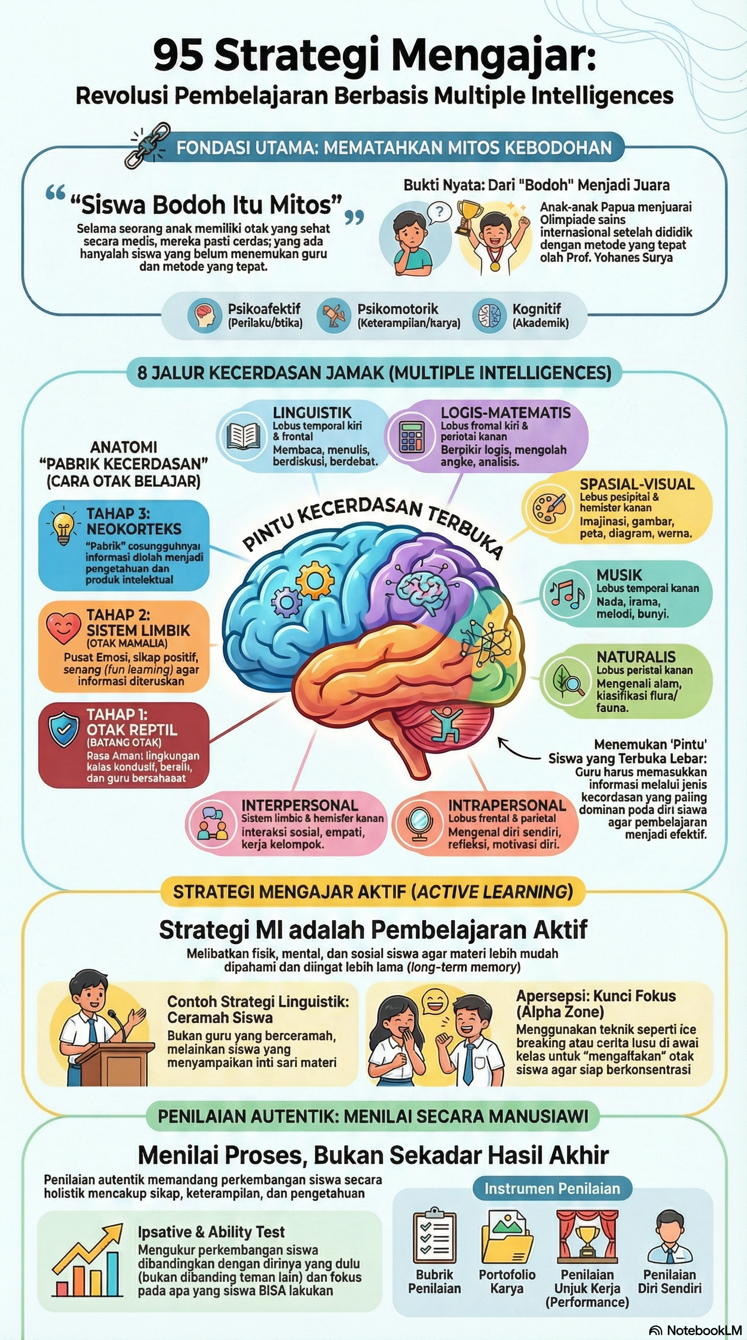 Temukan 95 strategi praktis berbasis Multiple Intelligences untuk membuka potensi setiap siswa, sesuai cara kerja otak dan gaya belajar mereka.